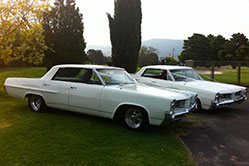Our unique matching cars are 1964 V8 Pontiac Parisienne’s, they are ‘pillarless’ models that allow the bride and groom to be photographed from within the car without the ever-present door column. Our spacious and comfortable cars seat up to 5 people per car, and we also offer red carpet and ‘pick up after reception’ services.